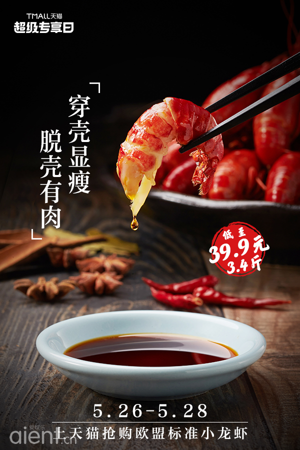39.9元3.4斤等你抢。5月25日晚 “天猫小龙虾馆”将在北京簋街隆重开业(东直门内大街235号),请全北京人民免费吃虾!管吃管够,不限量供应。
