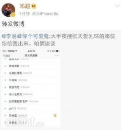 据全明星探报道,3月28日下午,邓超秒删了一条微博,内容重口,跟新近红人张天爱有关,真是大写的尴尬啊!之前也有不少明星微博手滑的,比如倪妮手滑点赞井柏然郑爽cp