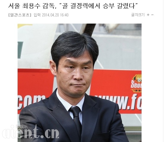 韩国媒体认为,首尔FC队是去年亚冠联赛的亚军球队,但在今年的赛季中,无论是本国联赛,还是亚冠联赛,表现得都与一只亚军球队极其不符。在最近的五场比赛中,只是取得了一胜二平四负的成绩。而唯一一场的胜利,也只是来自于对手的乌龙球。而反见去年首尔FC队的表现,一路闯进亚冠决赛,面对巨资打造的广州恒大队时,也是两次战平对手,最终因客场进球数少而屈居亚军。首尔的出色表现,也让主教练崔龙洙获得了2013年度亚足联最佳教练大奖。而从本赛季开始,无论是教练,还是首尔队的球员,好像都一直在郁闷之中度过。面对23号与北京国安队的比赛,首尔FC虽然是主场作战,但北京国安绝对不是一个容易对付的对手。在小组赛第一次交锋时,客场作战的首尔FC在北京工人体育馆1:1与国安战平。
