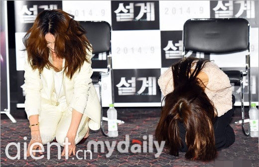 而两名女主演申恩庆,吴仁惠为了再现电影中的情节,更是直接在会场下跪并对着观众磕头。而两位女星此举也引发了网友的热议。
