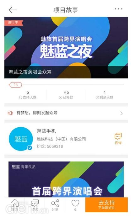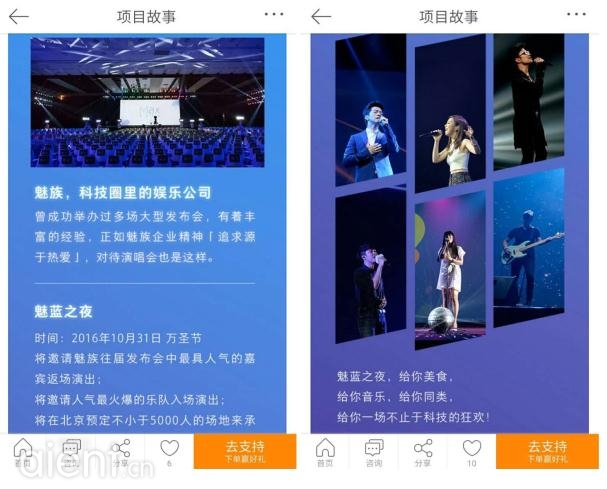 “魅蓝之夜”新浪众筹页面(需用手机打开):http://app.cf.weibo.com/application/projectstory?pid=1091630592405392&ctn=home