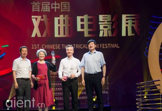 (在首届中国戏曲电影展表彰盛典上浙江省委宣传部副部长唐中祥、中国电影家协会分党组书记张宏为特别改编优秀戏曲电影《唐琬与陆游》、《珍珠塔》颁奖)
