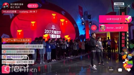 整场直播最具仪式感的是2017天猫双11官方爆款清单正式发布的环节,在杭州阿里巴巴总部西溪园区,阿里巴巴CMO董本洪先生将爆款清单卷轴系在猫头气球上放飞,寓意将这份天猫小二精挑细选出来的官方爆款清单送到千家万户。