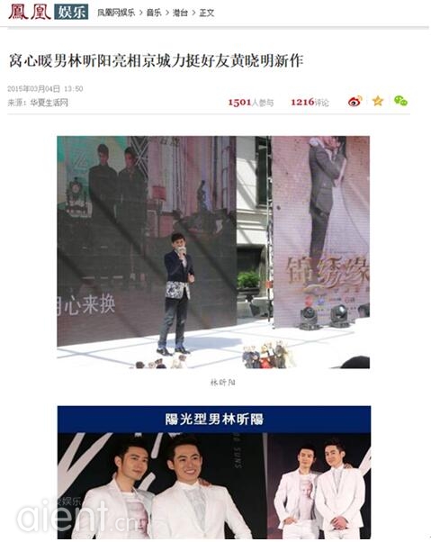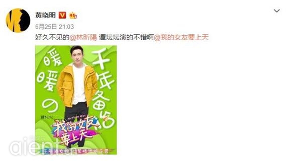 2018年6月25日夜,黄晓明微博赞扬林昕阳“谭坛坛演的不错啊”,并附林昕阳剧中海报,给好兄弟林昕阳在近期热播网剧《我的女友要上天》中的表现站台打气。林昕阳6月26日上午也惊喜回应,并“祝福晓明哥新电影「金蝉脱壳2」大卖特卖。”兄弟之情非同一般。