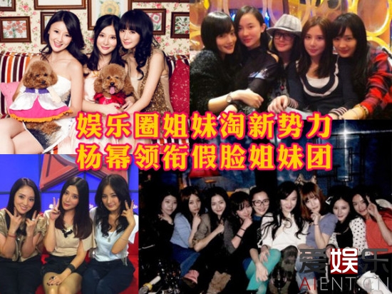 娱乐圈的姐妹淘有两大势力,一个是天后领衔的“六年一班”、一个是大小S领衔的七仙女姐妹淘,最近还有一个姐妹团正在蹿红,就是由爆红的杨幂为首的人称“假脸姐妹团”的小团体,这个团体包括了杨幂、李小璐、秦岚、熊乃瑾、霍思燕、甘薇和肖雨雨七人。