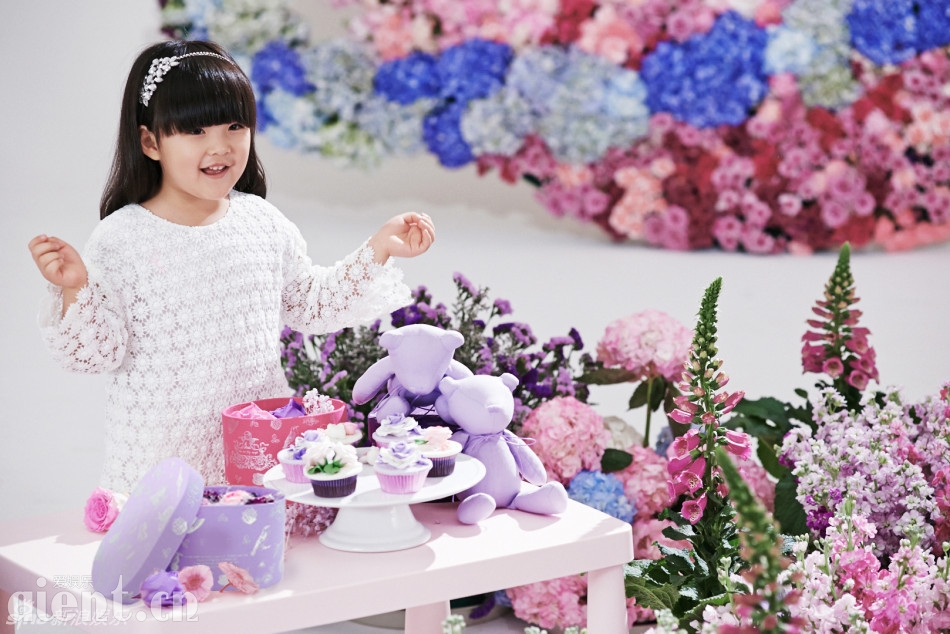 Angela王诗龄一组公益广告写真曝光,Angela化身俏丽小花仙,在花丛中绽放灿烂笑